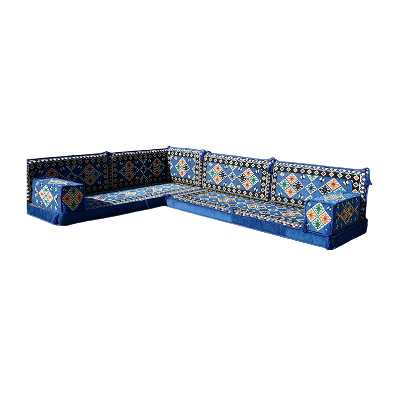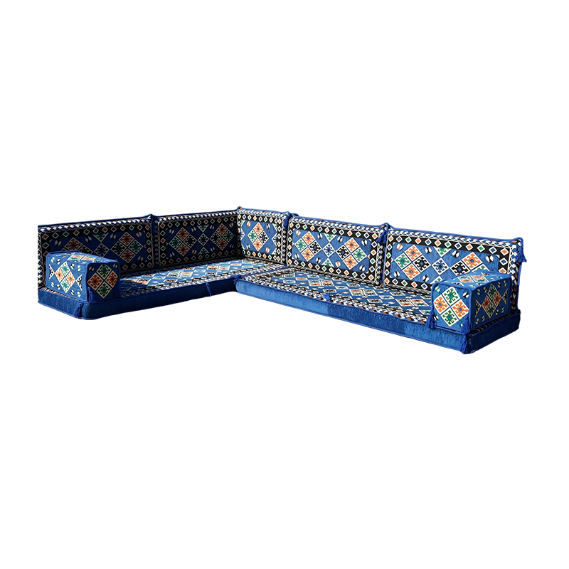 Desc.: 4 Inch Thick Beautiful Blue Corner Floor Seating Set Indoor Floor Couch