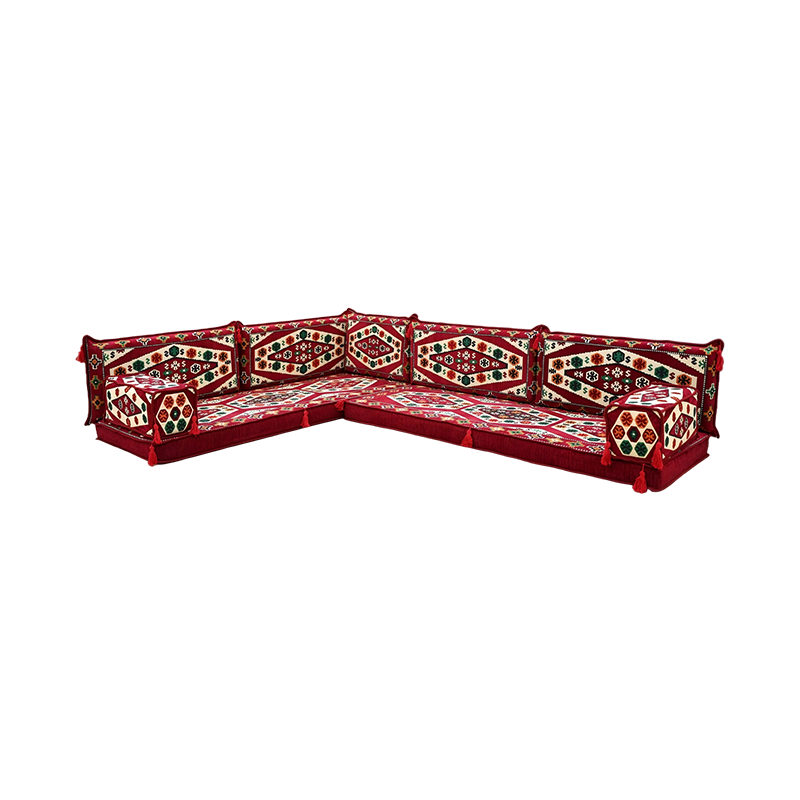 تُعدّ أريكة الأرضية العربية، المعروفة أيضًا باسم طقم الجلسة، عنصرًا أساسيًا في أثاث المجالس التقليدية. صُممت هذه المجموعة المنخفضة المستوى لتوفير الراحة والمعيشة الجماعية، وتشجيع الحوار والتواصل في أجواء هادئة ومريحة. وباعتبارها حجر الزاوية في أي مجلس عربي، تُشكّل هذه القطع المعيارية، المزينة بوسائد فخمة، مساحة اجتماعية دافئة وجذابة، مثالية لاستقبال الضيوف والتجمعات العائلية وقضاء أوقات ممتعة بعد الظهر، حيث تمزج بشكل رائع بين التقاليد الثقافية العريقة وراحة الحياة اليومية.
