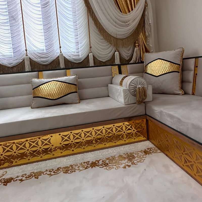 An Arabic floor sofa, also called a jalsa set, is a central element of traditional majlis furniture. This low-level seating arrangement is designed for comfort and communal living, encouraging conversation and connection in a relaxed, grounded setting. As the cornerstone of an Arabic majlis, these modular pieces, adorned with plush cushions, create a warm and inviting social space perfect for entertaining guests, family gatherings, and leisurely afternoons, beautifully blending timeless cultural tradition with everyday comfort.