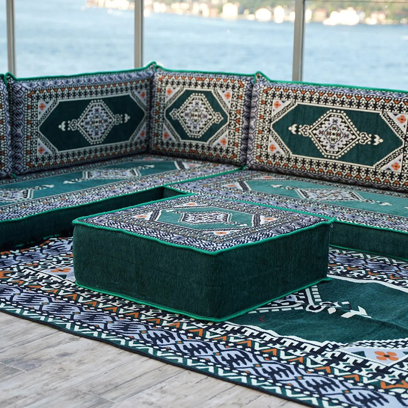 Desc.: Arabic Living Room Furniture Deep Green Majlis Floor Sofa Corner Floor Seating