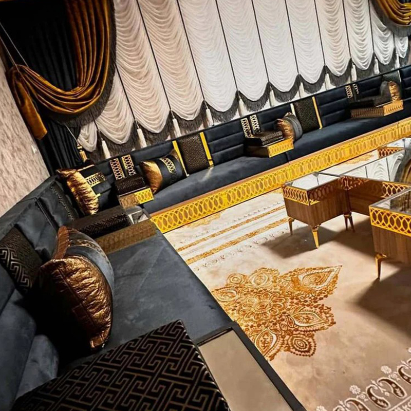 An Arabic floor sofa, also called a jalsa set, is a central element of traditional majlis furniture. This low-level seating arrangement is designed for comfort and communal living, encouraging conversation and connection in a relaxed, grounded setting. As the cornerstone of an Arabic majlis, these modular pieces, adorned with plush cushions, create a warm and inviting social space perfect for entertaining guests, family gatherings, and leisurely afternoons, beautifully blending timeless cultural tradition with everyday comfort.