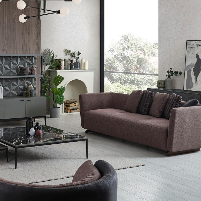 Turkish style furniture Mimoza fabric sofa adds a sophisticated atmosphere to your living room with its modern and elegant design. It offers superior comfort with its soft cushions and quality fabric. This sofa set, which draws attention with its golden details and stylish lines, adapts to all kinds of decoration styles. This fabric couch set is an ideal choice for those looking for both comfort and elegance in your home.