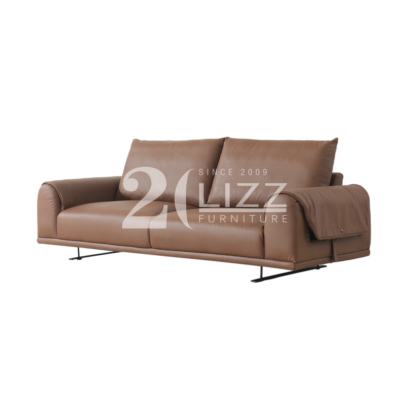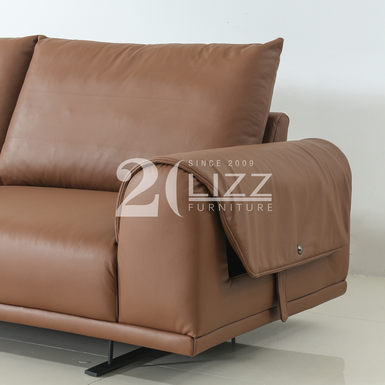 Desc.:Contemporary Brown Leather Furniture Italian Sofa with Storage on Arms