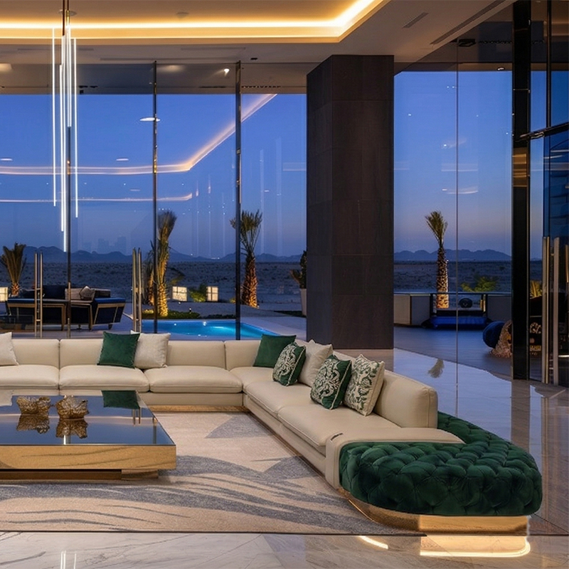 An Arabic floor sofa, also called a jalsa set, is a central element of traditional majlis furniture. This low-level seating arrangement is designed for comfort and communal living, encouraging conversation and connection in a relaxed, grounded setting. As the cornerstone of an Arabic majlis, these modular pieces, adorned with plush cushions, create a warm and inviting social space perfect for entertaining guests, family gatherings, and leisurely afternoons, beautifully blending timeless cultural tradition with everyday comfort.