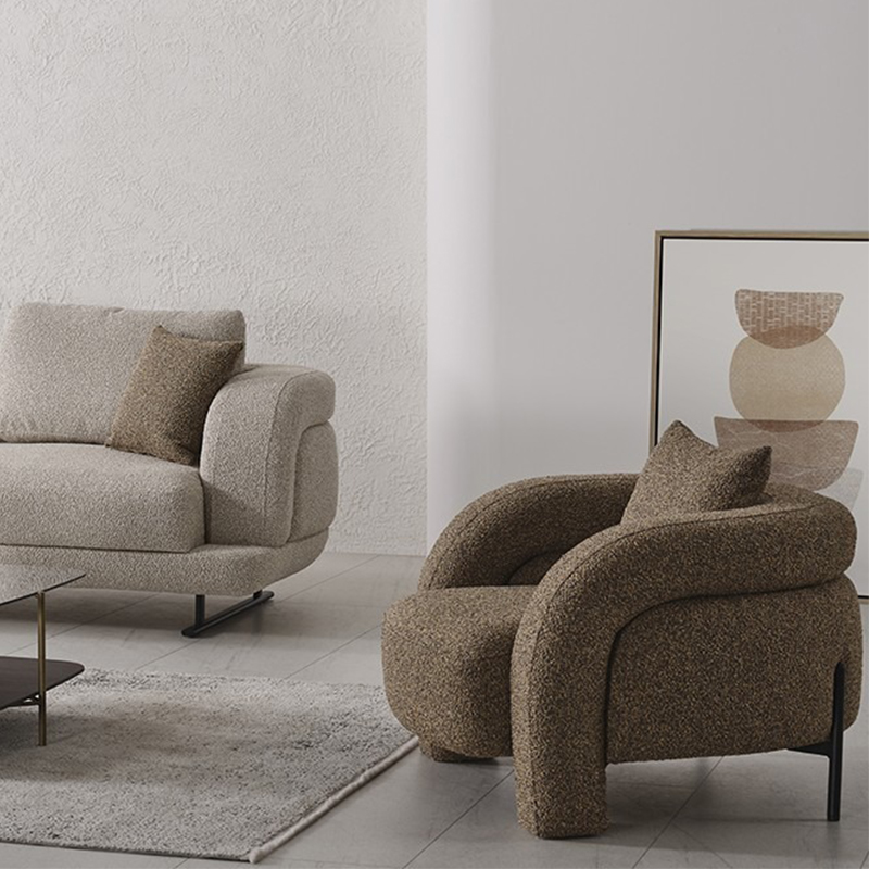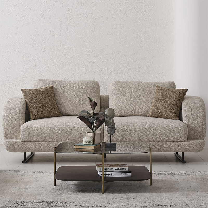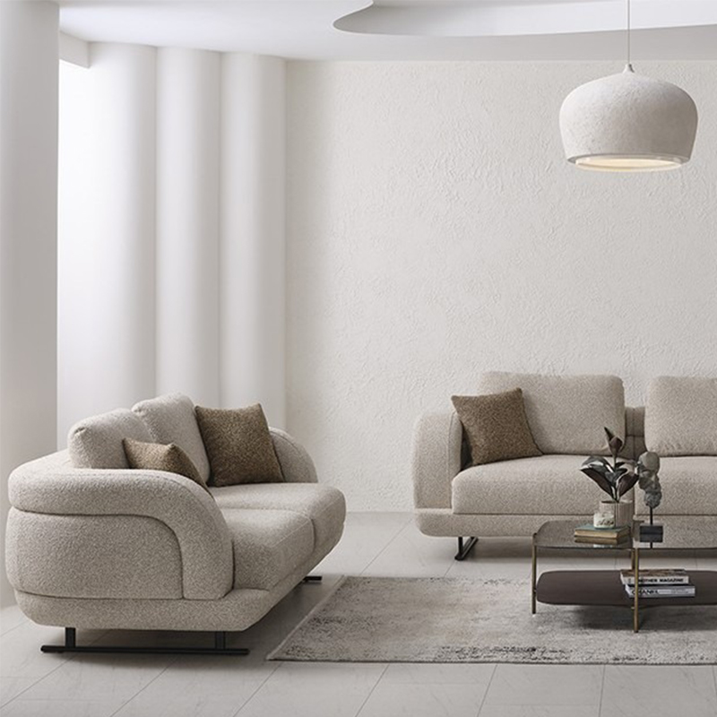 Turkish style furniture Lotus Sofa Set adds a sophisticated atmosphere to your living room with its modern and elegant design. It offers superior comfort with its soft cushions and quality fabric. This sofa set, which draws attention with its golden details and stylish lines, adapts to all kinds of decoration styles. This fabric couch set is an ideal choice for those looking for both comfort and elegance in your home.
