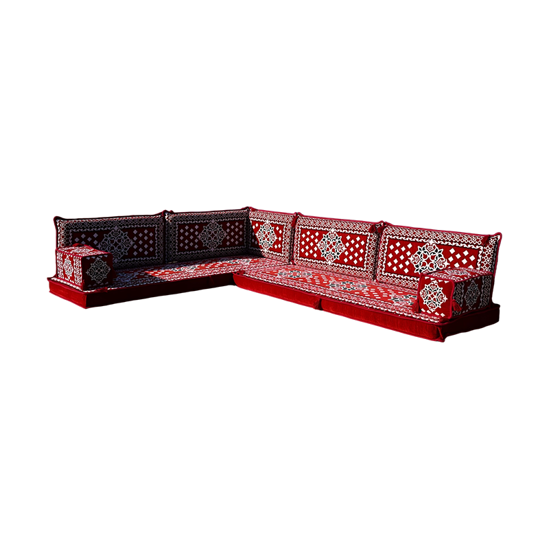 تُعدّ أريكة الأرضية العربية، المعروفة أيضًا باسم طقم الجلسة، عنصرًا أساسيًا في أثاث المجالس التقليدية. صُممت هذه المجموعة المنخفضة المستوى لتوفير الراحة والمعيشة الجماعية، وتشجيع الحوار والتواصل في أجواء هادئة ومريحة. وباعتبارها حجر الزاوية في أي مجلس عربي، تُشكّل هذه القطع المعيارية، المزينة بوسائد فخمة، مساحة اجتماعية دافئة وجذابة، مثالية لاستقبال الضيوف والتجمعات العائلية وقضاء أوقات ممتعة بعد الظهر، حيث تمزج بشكل رائع بين التقاليد الثقافية العريقة وراحة الحياة اليومية.