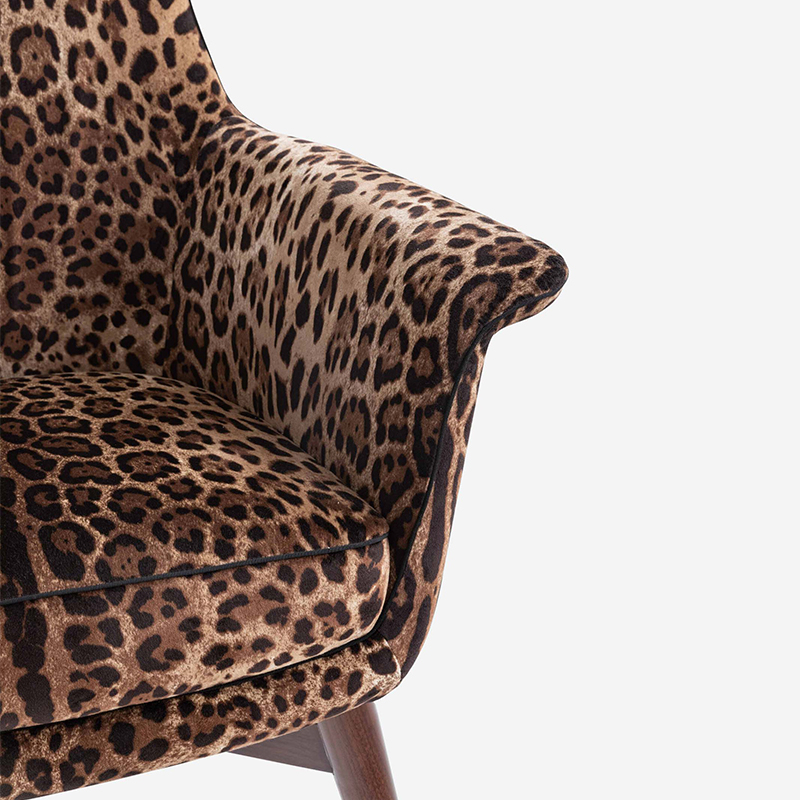 Desc.: Foshan Luxury Furniture Symmetrical Design Leopard Fabric Lilla Armchair