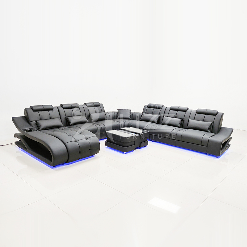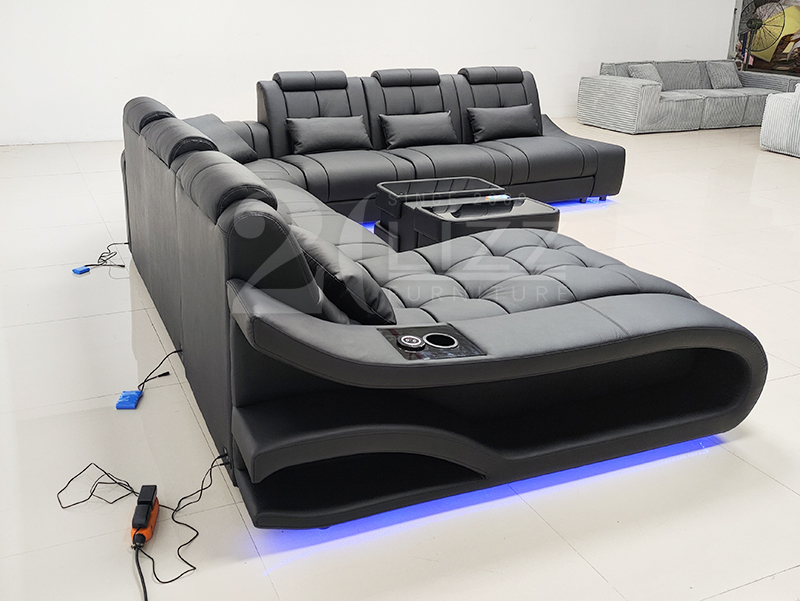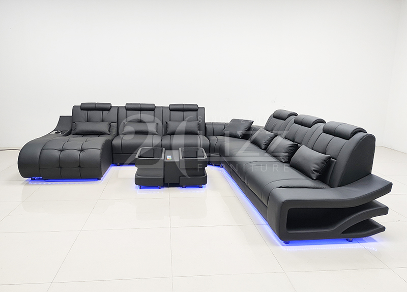 Desc.: Futuristic Sectional Lounge Furniture LED Cupholder USB New Design Black Leather Couch