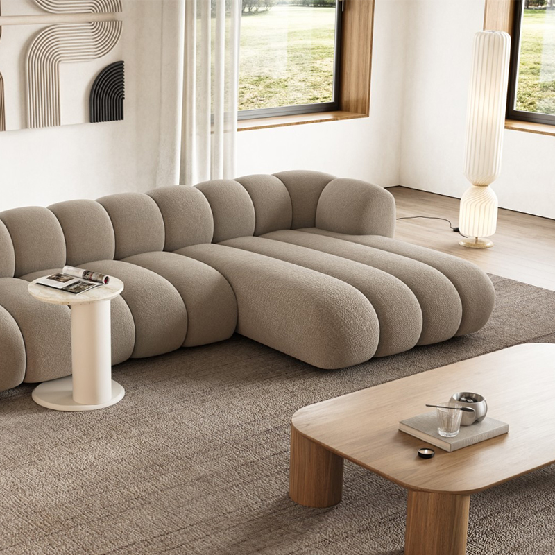 A modular sofa, featuring special shape design sofa with comfortable seating.