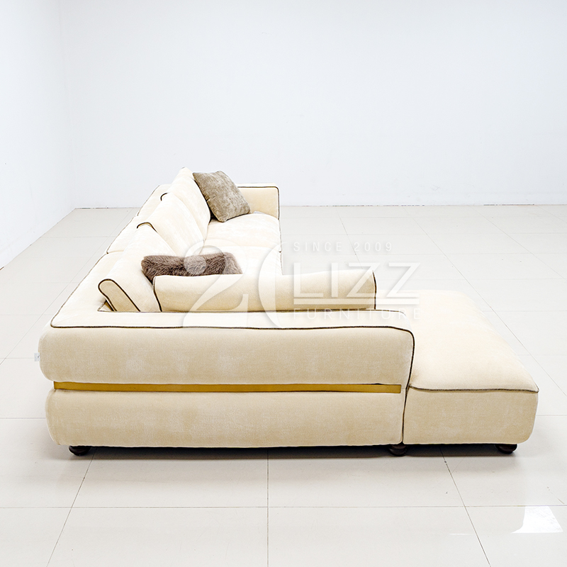 Desc.: Italian Giorgio Lounge Suite Living Room Furniture Buff Fabric Couch Luxor L-shape Sofa