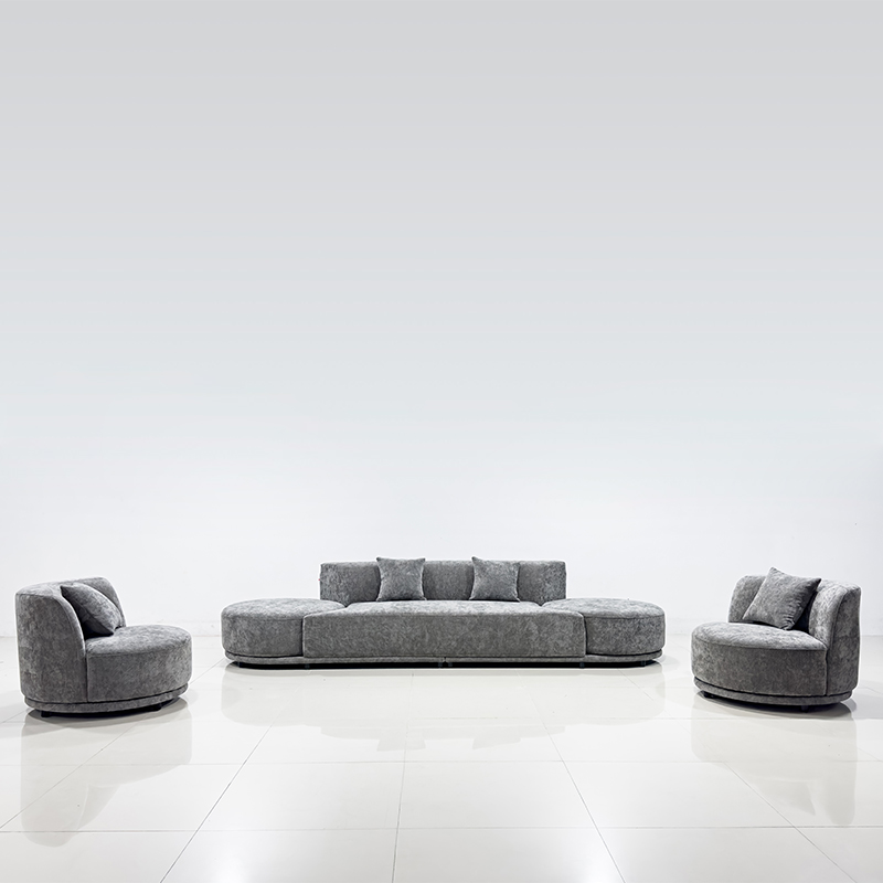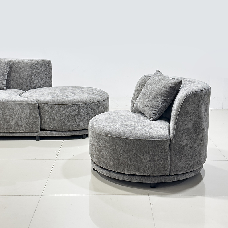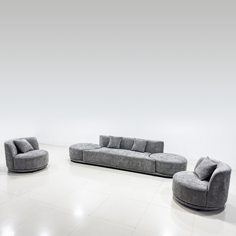 Desc.: Italian Modern Luxury Furniture Chenille Fabric Bordone Sofa with Swivel Chair And Ottoman