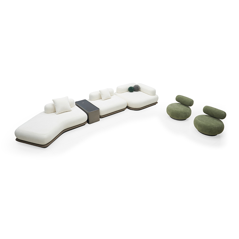 A modular sofa, featuring special shape design sofa with comfortable seating.