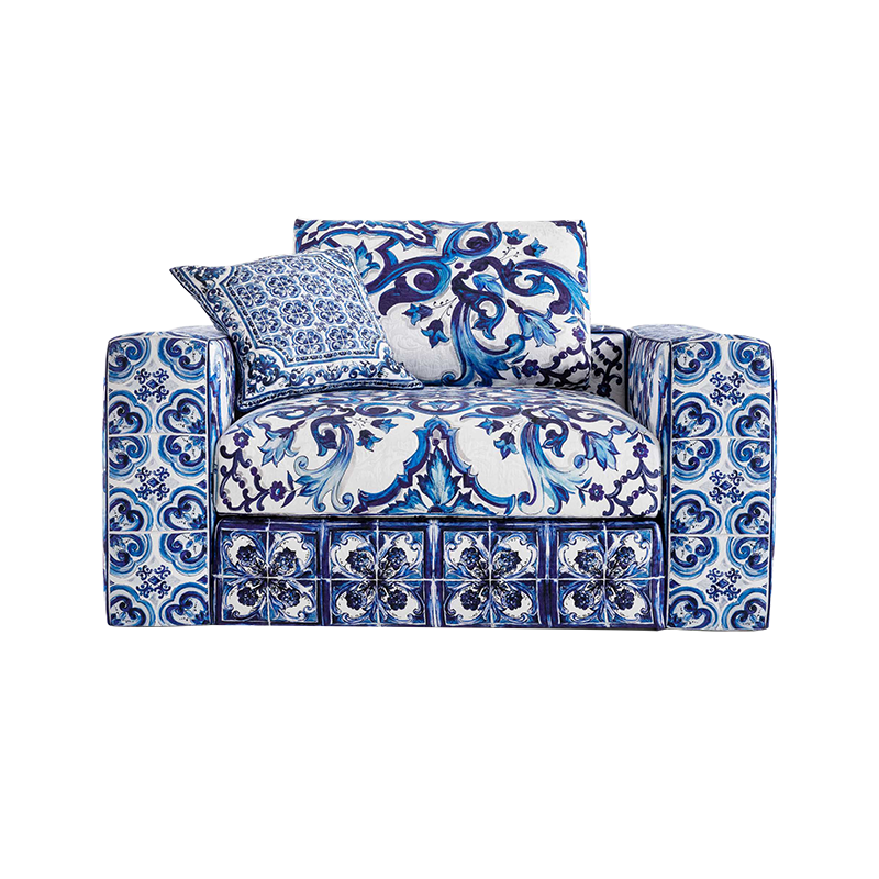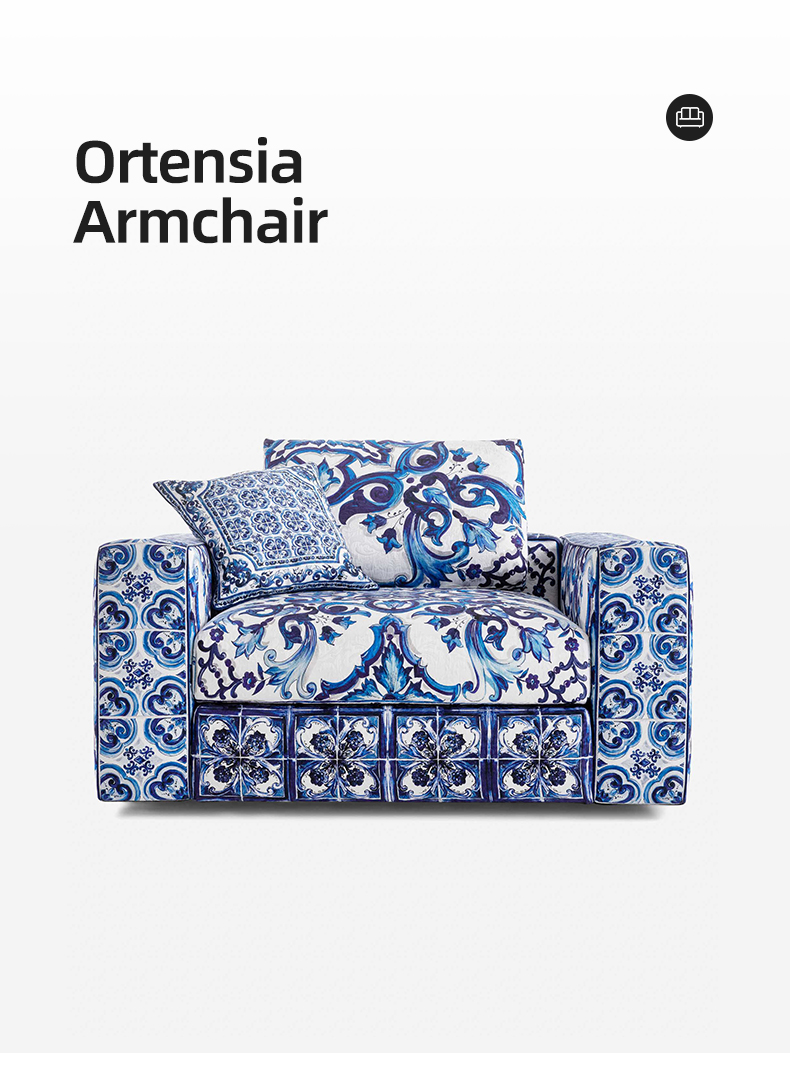 Desc.: Luxury Chair Suppliers Blue Mediterranean Fabric DG Ortensia Armchair