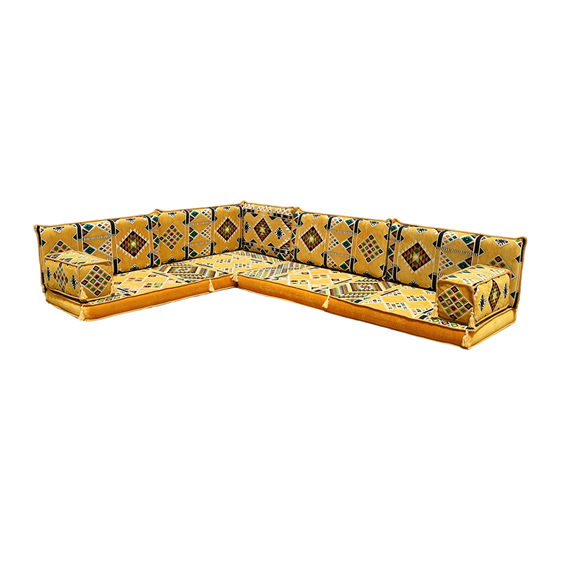 تُعدّ أريكة الأرضية العربية، المعروفة أيضًا باسم طقم الجلسة، عنصرًا أساسيًا في أثاث المجالس التقليدية. صُممت هذه المجموعة المنخفضة المستوى لتوفير الراحة والمعيشة الجماعية، وتشجيع الحوار والتواصل في أجواء هادئة ومريحة. وباعتبارها حجر الزاوية في أي مجلس عربي، تُشكّل هذه القطع المعيارية، المزينة بوسائد فخمة، مساحة اجتماعية دافئة وجذابة، مثالية لاستقبال الضيوف والتجمعات العائلية وقضاء أوقات ممتعة بعد الظهر، حيث تمزج بشكل رائع بين التقاليد الثقافية العريقة وراحة الحياة اليومية.