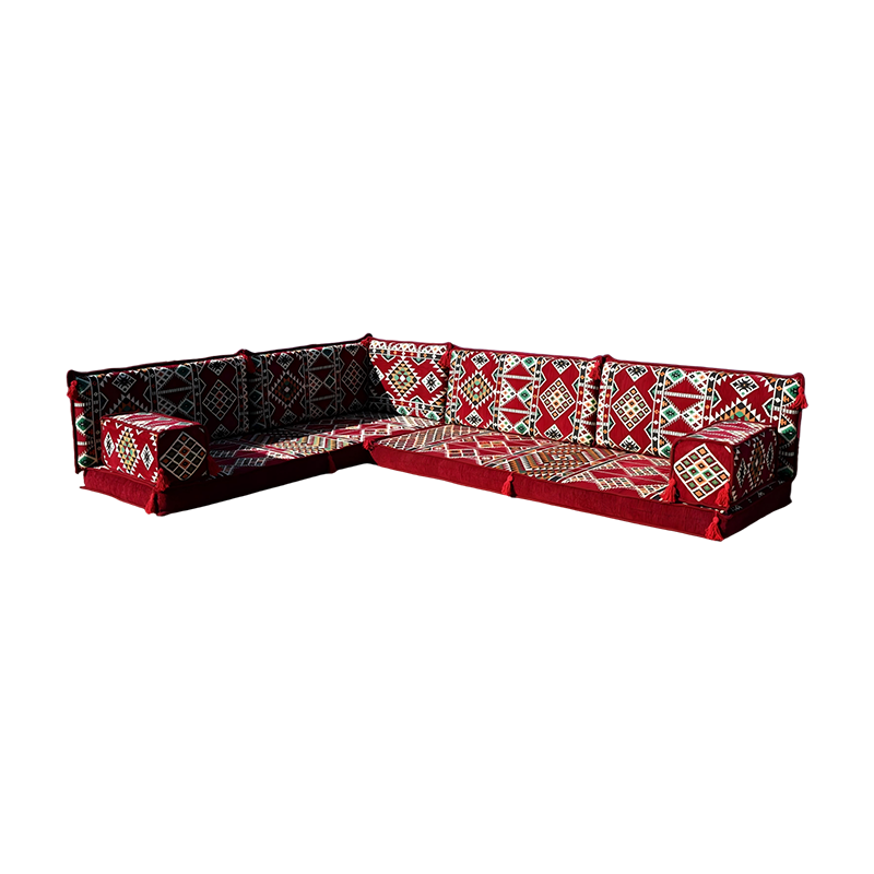 تُعدّ أريكة الأرضية العربية، المعروفة أيضًا باسم طقم الجلسة، عنصرًا أساسيًا في أثاث المجالس التقليدية. صُممت هذه المجموعة المنخفضة المستوى لتوفير الراحة والمعيشة الجماعية، وتشجيع الحوار والتواصل في أجواء هادئة ومريحة. وباعتبارها حجر الزاوية في أي مجلس عربي، تُشكّل هذه القطع المعيارية، المزينة بوسائد فخمة، مساحة اجتماعية دافئة وجذابة، مثالية لاستقبال الضيوف والتجمعات العائلية وقضاء أوقات ممتعة بعد الظهر، حيث تمزج بشكل رائع بين التقاليد الثقافية العريقة وراحة الحياة اليومية.