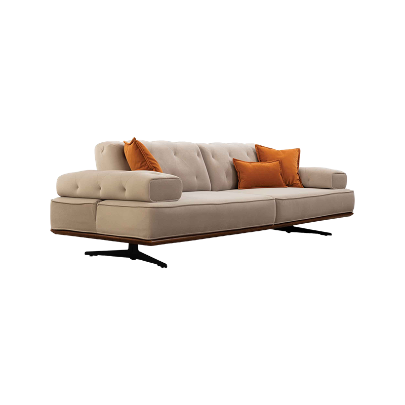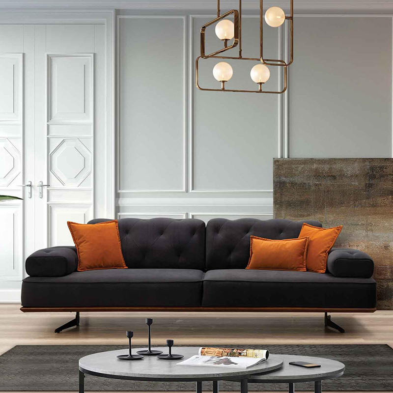 Upgrade your living room with a modern design lounge suite fits for the transitioning home. This sofa set is a gorgeous choice that offered in different color options. Curved arms design with strong solid wood base gives it comfortable seating experience.