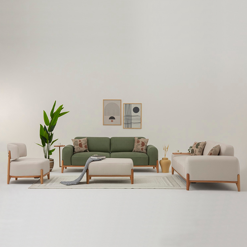 Desc.: Modern Furniture Fabric Lounge Settee Solid Wood Likya Sofa Set