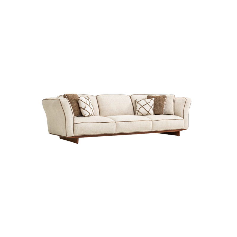 Turkish style furniture Life Sofa Set adds a sophisticated atmosphere to your living room with its modern and elegant design. It offers superior comfort with its soft cushions and quality fabric. This sofa set, which draws attention with its golden details and stylish lines, adapts to all kinds of decoration styles. This fabric couch set is an ideal choice for those looking for both comfort and elegance in your home.