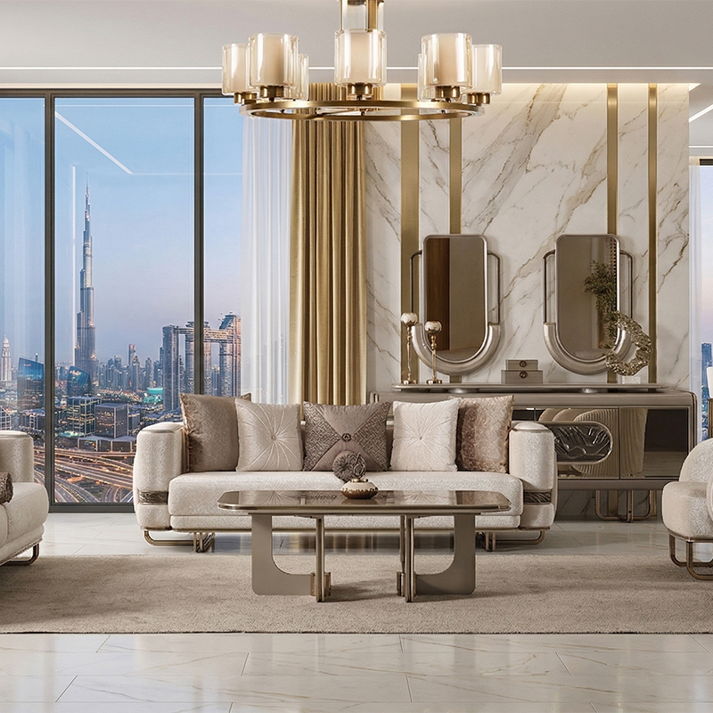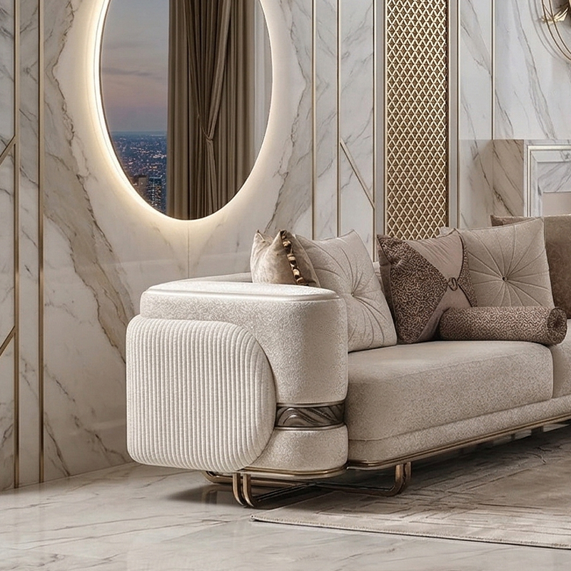 Emphasizes the use of high-quality materials, such as luxurious fur, fine leather, and high-grade fabrics, the application of these materials is meticulous, and every detail is crafted to perfection. It represents the pinnacle of luxury and style in the home furnishings industry, offering consumers a unique and high-quality living experience.