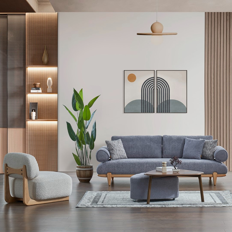 Upgrade your living room with a modern design lounge suite fits for the transitioning home. This sofa set is a gorgeous choice that offered in different color options. Curved arms design with strong solid wood base gives it comfortable seating experience.