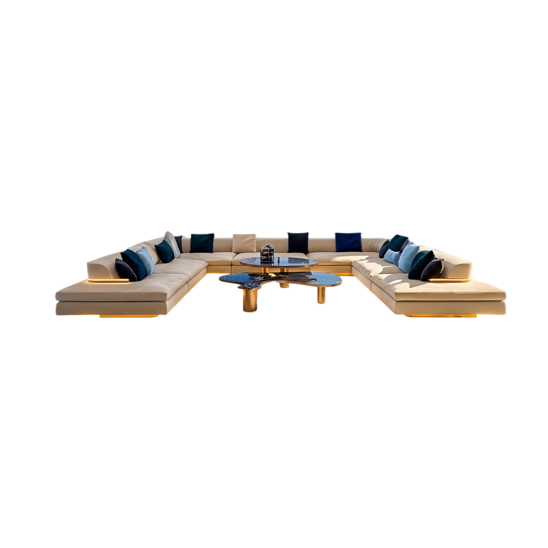 Desc.: New Style Arabic Floor Furniture Sectional Couch with Lights U-shape Majlis
