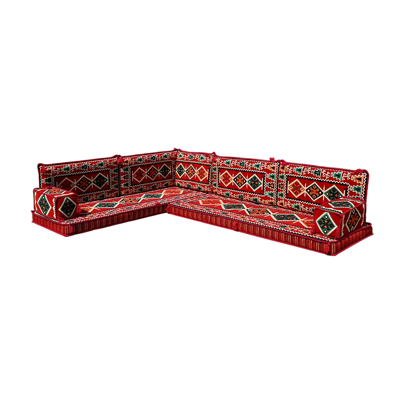 تُعدّ أريكة الأرضية العربية، المعروفة أيضًا باسم طقم الجلسة، عنصرًا أساسيًا في أثاث المجالس التقليدية. صُممت هذه المجموعة المنخفضة المستوى لتوفير الراحة والمعيشة الجماعية، وتشجيع الحوار والتواصل في أجواء هادئة ومريحة. وباعتبارها حجر الزاوية في أي مجلس عربي، تُشكّل هذه القطع المعيارية، المزينة بوسائد فخمة، مساحة اجتماعية دافئة وجذابة، مثالية لاستقبال الضيوف والتجمعات العائلية وقضاء أوقات ممتعة بعد الظهر، حيث تمزج بشكل رائع بين التقاليد الثقافية العريقة وراحة الحياة اليومية.