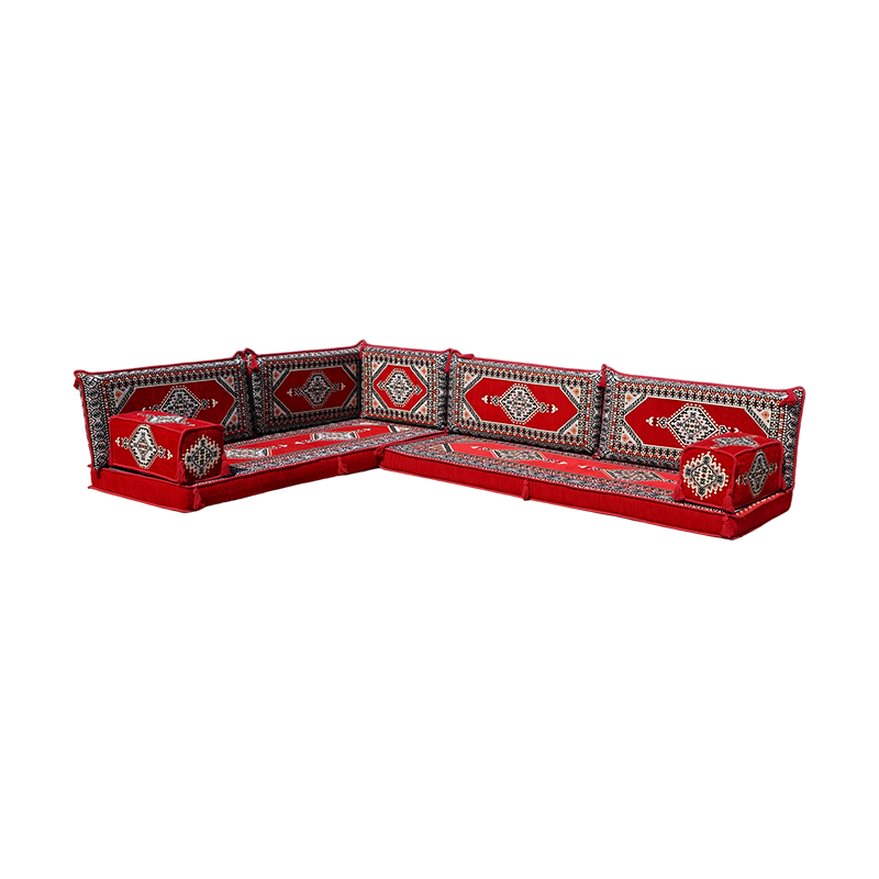 Desc.: Red Color Floor Cushions L Shaped Arabic Seating Sofas Traditional Majlis