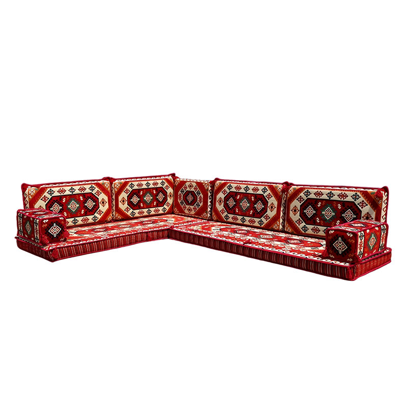 تُعدّ أريكة الأرضية العربية، المعروفة أيضًا باسم طقم الجلسة، عنصرًا أساسيًا في أثاث المجالس التقليدية. صُممت هذه المجموعة المنخفضة المستوى لتوفير الراحة والمعيشة الجماعية، وتشجيع الحوار والتواصل في أجواء هادئة ومريحة. وباعتبارها حجر الزاوية في أي مجلس عربي، تُشكّل هذه القطع المعيارية، المزينة بوسائد فخمة، مساحة اجتماعية دافئة وجذابة، مثالية لاستقبال الضيوف والتجمعات العائلية وقضاء أوقات ممتعة بعد الظهر، حيث تمزج بشكل رائع بين التقاليد الثقافية العريقة وراحة الحياة اليومية.