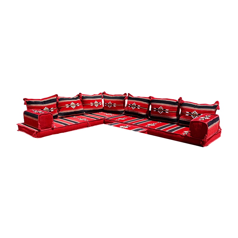 تُعدّ أريكة الأرضية العربية، المعروفة أيضًا باسم طقم الجلسة، عنصرًا أساسيًا في أثاث المجالس التقليدية. صُممت هذه المجموعة المنخفضة المستوى لتوفير الراحة والمعيشة الجماعية، وتشجيع الحوار والتواصل في أجواء هادئة ومريحة. وباعتبارها حجر الزاوية في أي مجلس عربي، تُشكّل هذه القطع المعيارية، المزينة بوسائد فخمة، مساحة اجتماعية دافئة وجذابة، مثالية لاستقبال الضيوف والتجمعات العائلية وقضاء أوقات ممتعة بعد الظهر، حيث تمزج بشكل رائع بين التقاليد الثقافية العريقة وراحة الحياة اليومية.