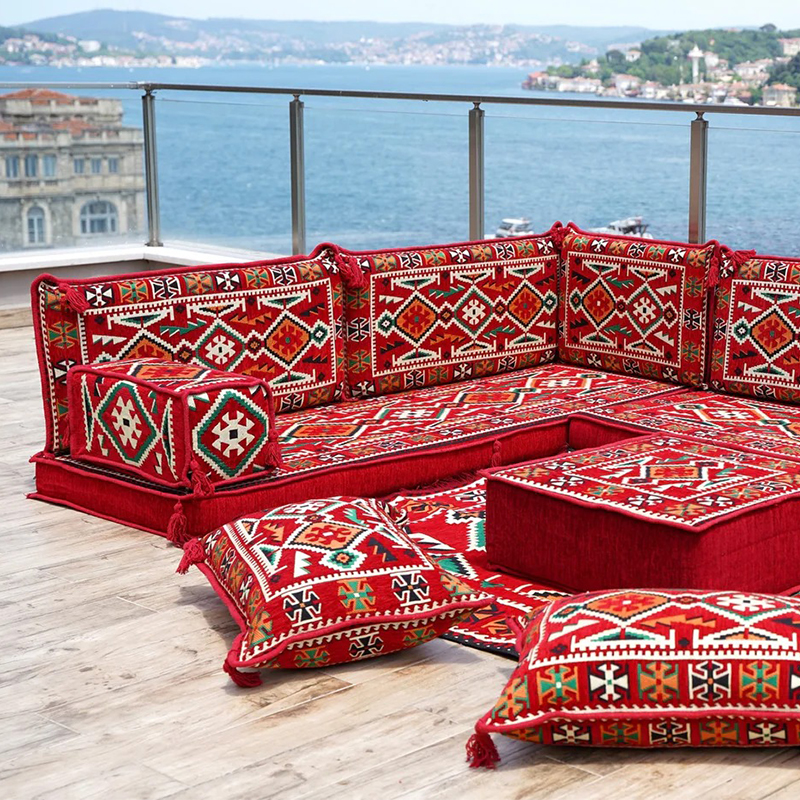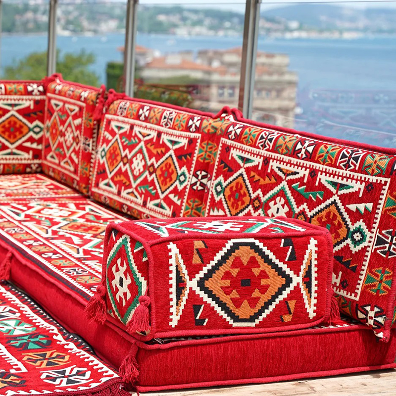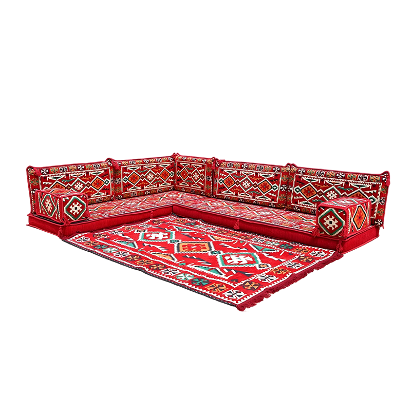 Desc.: Red Turkish Floor Sofa U-shape Floor Seating Middle East Majlis Sofa Set
