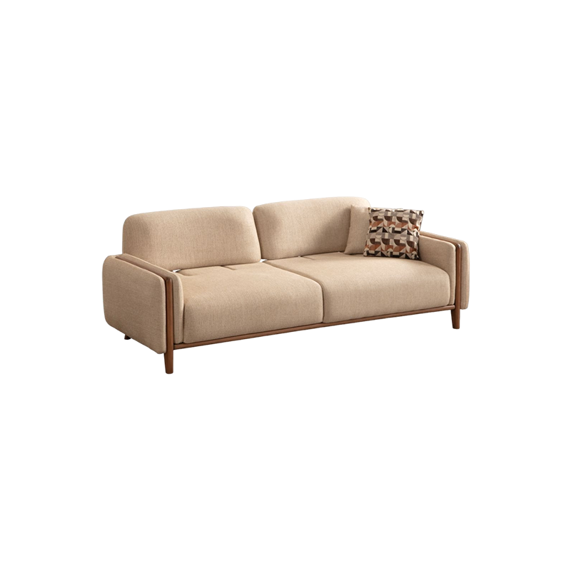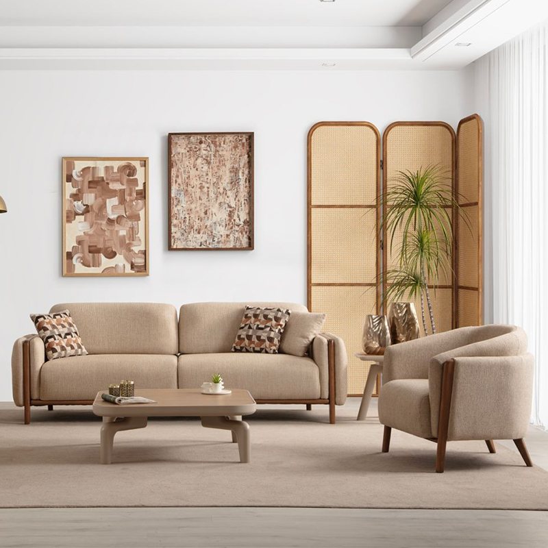 Desc.: Solid Wood Upholstered Lounge Brown Linen Fabric Boston Sofa Set