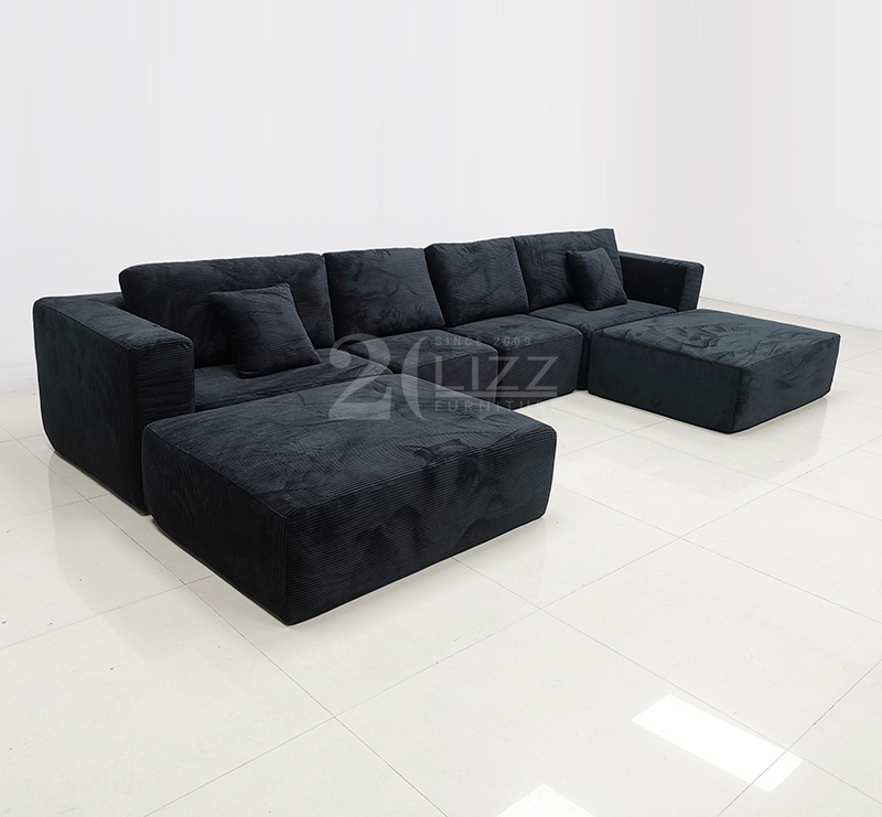 Desc.: Transform Sectional Sofa Vacuum Compressed Black Corduroy Fabric Couch in Box