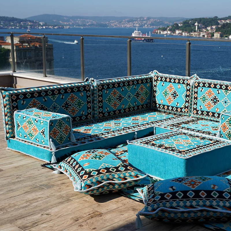 Desc.: Turquoise Arabic Floor Couch Modular Design Floor Cushion Majlis