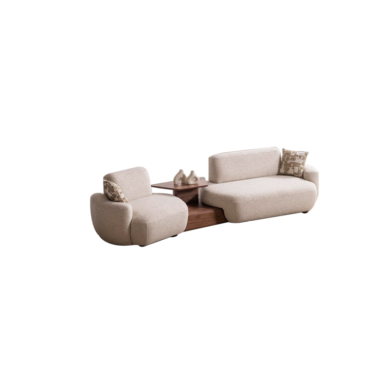 Turkish style furniture Lugano Sofa Set adds a sophisticated atmosphere to your living room with its modern and elegant design. It offers superior comfort with its soft cushions and quality fabric. This sofa set, which draws attention with its golden details and stylish lines, adapts to all kinds of decoration styles. This fabric couch set is an ideal choice for those looking for both comfort and elegance in your home.