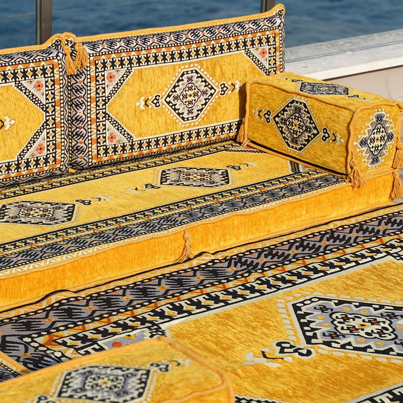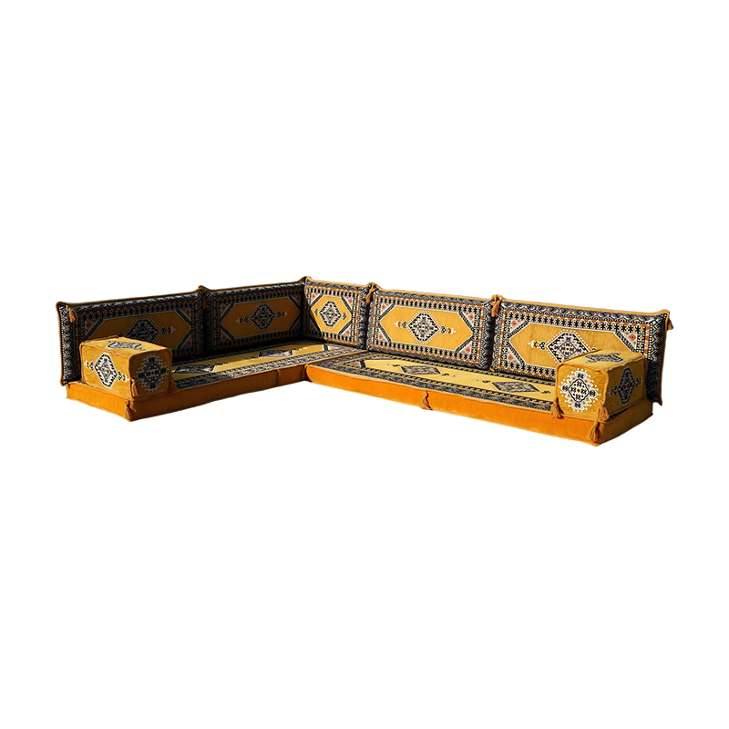 Desc.: Yellow Floor Sofa Seating Set Corner Arabic Sofa Set Oriental Floor Cushions